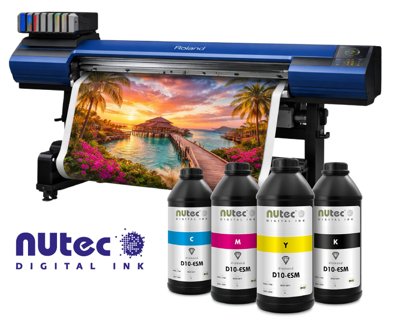 Las tintas NUtec D10-ESM y NUtec Topaz T15-RG están formuladas para impresión digital de gran formato, ofreciendo alta resolución de imagen, colores intensos y estabilidad durante la producción, lo que permite obtener gráficos publicitarios con resultados consistentes.